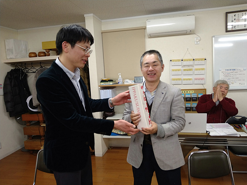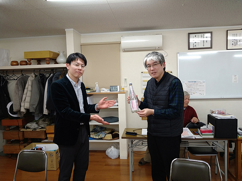 12月13日高段者定例碁会である鳳凰碁会が開催されました。今回は優勝・竹澤一郎さん、準優勝・梅津京さんが、それぞれ三谷プロセレクトの日本酒を手にしました。